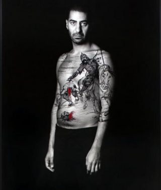 Par l’application de la calligraphie sur les visages et corps comme par l’utilisation de contrastes noir et blanc très marqués, ce nouveau travail de Shirin Neshat nous remmémore instinctivement sa première et mondialement célèbre série des Women of Allah. Pourtant, comme le souligne Abdee Kalantari dans le texte du catalogue qui accompagne l’exposition, il s’en distingue immédiatement par la finesse et la petite taille des écritures calligraphiées, presque illisibles, et surtout par l’absence de tout symbolique religieuse manifeste. L’artiste veut en effet nous emmener ici dans une dimension qui n’est plus celle de l’immédiat, mais celle d’une perspective historique, plus universelle, au-delà de tout clivage conjoncturel.