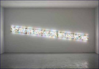 Des néons colorés mis bout à bout sont fixés en diagonale sur le mur. Cette trajectoire semble déterminer le titre de l’oeuvre, Sunset. Ce qui pourrait être un coucher de soleil se résume à une forme abstraite géométrique. En utilisant des tubes fluorescents et des filtres de couleurs, Spencer Finch s’attache cette fois-ci à retranscrire, de manière exacte et scientifique, la perception des hommes du paléolithique.