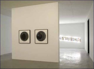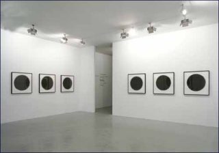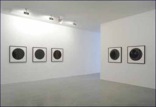 Pleines lunes obscures : la série The Darkness Drawing surgit dans la lumière. Chaque cadre renferme un rond exécuté au fusain sur un fond blanc laissé en réserve. Le bord de ces cercles remplis de noir s’estompe et laisse apparaître les empreintes de l’artiste comme les marques laissées dans des peintures rupestres. Les variations de teintes et de formes sont fines et sensibles, à la limite du visible.