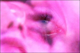 La galerie Anne de Villepoix présente une série de photographies réalisées par l’artiste américain San Samore. Celui-ci pense son travail de photographie comme un mariage de la peinture et du cinéma qu’il nomme painting cinema. Il entend proposer des constructions non linéaires, parlant du montage en terme de juxtaposition, de collage d’images statiques, et citant La Jetée de Chris Marker (1963). La série Allegories of Beauty (Incomplete) en 1998 questionnait la production des «images de beauté» grâce à une technicité cinématographique faisant glisser les corps photographiés vers des bustes de l’Antiquité. Aujourd’hui, Pathological Tales et Schizophrenic Beauty superposent pupilles et lèvres dans un fondu acidulé.