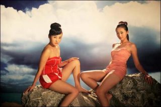 Mais Yang Fudong a principalement voulu développer son film autour de la couleur, alors qu’il travaillait jusque-là en noir et blanc, comme en témoigne encore la série de photos The Light That I Feel issue d’un tournage en Norvège, ou le premier volet de New Women que nous évoquions précédemment. Un serpent jaune aux écailles luisantes s’enroule autour des membres d’une jeune fille en maillot bleu. Deux modèles en robes bleue et rouge entament un corps-à -corps contre un panneau coloré. Un coucher de soleil orangé laisse entrevoir une nuit bleue où se balancent les palmiers. Une nymphe se lance dans une chorégraphie avec son bikini rouge à pois blancs. Des flocons de neige artificielle tournoient dans l’air, ravissant les jeunes modèles. Les panneaux colorés teintent le décor de tons acidulés.