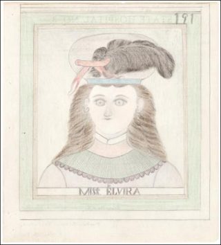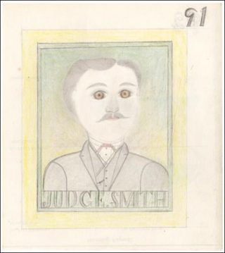 Ses dessins au crayon et crayon de couleur, aux traits méticuleux, réalisés dans un style désuet sur des feuilles de petit format portant l’en-tête de l’hôpital, illustrent des personnages, des références à la guerre civile, des automobiles et des paysages urbains en milieu rural, un monde imaginaire — celui dans lequel il échappait à la réalité de sa vie brisée. Ses portraits, pourtant, affichent les stigmates de ses traitements aux psychotropes; en témoignent leurs yeux écarquillés aux pupilles dilatées.