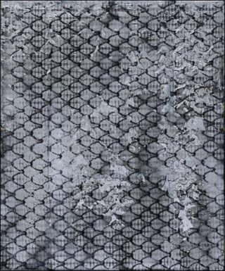 Les toiles, grisonnantes, argentées, quinconciales, tramées, diversement motivées, pas bien variées, répétitives, au design de papiers peints floraux, grillagées, ramagées, spectaculairement formatées, portent un titre en franglais: The Emmaüs Bride.