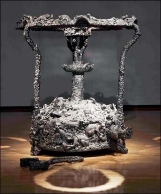 Jitish Kallat expose en parallèle, à l’Impasse Beaubourg, deux pièces séminales de 2009. Annexation, un réchaud indien géant fourmillant d’animaux, côtoie le film Forensic Trail of the Grand Banquet: dans ce voyage à travers l’espace, les galaxies et les nébuleuses sont remplacés par des aliments échographiés au rayon X.