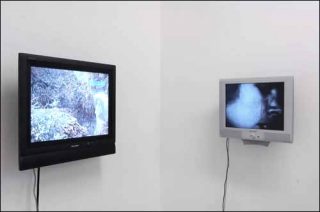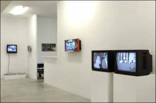 Aussi saturation vacillante et absence sont-elles indissociables, comme le montre l’installation de Jan Macuska (From Wall to Wall, 2005): un espace blanc et vide, légèrement isolé des autres œuvre; sur l’un des murs, un écran de lumière sans autre image que cette phrase à mi-hauteur du mur, qui se continue en lettres réelles en dehors de l’écran et qui relate le mouvement d’un «je» anonyme allant d’un mur à un autre. Cette bribe de sens est aussi littéralement non-sens et évoque la réclusion de l’homme dans un espace fini qui fait songer au cachot de Pascal: on n’y tient pas, mais comment en sortir?
