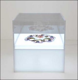 — Neige végétale, 2001. Fil et cannetille d’or, paillettes, fils de soie et de coton, gel silicone et organsin de soie. 15 cm de diamètre