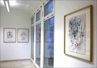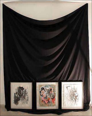C’est avec déférence que l’on entre dans l’univers d’Eugnie Goldschmeding: le baldaquin coloré que l’artiste a installé à l’entrée de l’atelier Cardenas-Bellanger force le visiteur à se pencher; c’est en pleine figure que ce dernier reçoit le faux jour lancé de l’intérieur par un projecteur habilement placé pour éblouir et faire réfléchir.