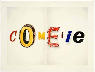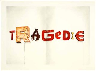 Mais les conséquences éthiques de cette leçon, ce sont les œuvres de Jamie Shovlin qui nous les montrent. Confrontant les mots «comédie» et «tragédie», tous les deux écrits avec les mêmes types de lettres (empruntées à l’artiste américain Jack Pierson), il s’amuse à en détruire le sens au profit de la matière: absorbé par leur apparence, ce ne sont plus les mots que nous regardons, mais les lettres, (véritable trompe l’œil); et dans ces lettres, la ruine annoncée de toutes les valeurs.