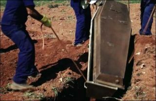 Apelo (2014) a été tournée dans le cimetière Dom Bosco qui servait de fosse commune clandestine pour les victimes de la dictature militaire. Ce cimetière est toujours en activité, officiellement pour accueillir les dépouilles des indigents. Il demeure également une opportunité pour accueillir les victimes des trafics les plus divers jusqu’aux victimes actuelles des violences policières et militaires. Debora Maria da Silva, militante pour les droits de l’homme est la narratrice du film. Elle dénonce l’anonymat des sépultures, dénonce l’oubli systématique. Dans ce film, on voit des agents travailler à la chaîne, retourner la terre, creuser des trous en surface pour y plonger des cercueils anonymes non fermés. Le sol est labouré, constamment remué. Le travail de mémoire est impossible.