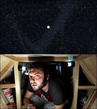 Lune. Ces seuls énoncés suffisent à déceler le caractère volontairement absurde de ce travail. On peut d’ailleurs y noter l’amusement non feint des spectateurs ou au contraire, leur lassitude lorsqu’ils réalisent que leur attente de spectaculaire ne sera pas satisfaite. Enfin, la dernière vidéo dévoile un résumé des 24 heures du trajet solitaire et inconfortable de Johan Decaix enfermé dans une capsule à destination de la Lune. C’est précisément dans cet aperçu partiel d’une expérience intimiste que se cristallise la démonstration: l’imaginaire n’est pas «délégable», il appartient à chacun de s’en saisir.