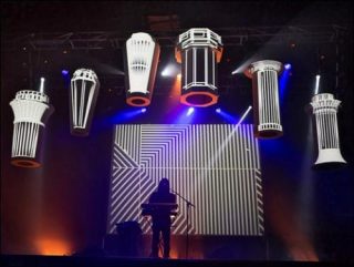 En complément, les groupes (LDLF et Hørd) invités lors de cette soirée ont assuré leurs sets au coeur d’une proposition plastique de l’artiste. Au-dessus de la scène, était accroché Railway To Yr. Skull (titre inspiré d’un morceau de Sonic Youth), une série de six sculptures dont les formes s’inspirent de cheminées de train à vapeur et sur lesquelles étaient projetées des vidéos qui en suivaient la silhouette, des créations originales assurées par des étudiants de l’EESI et du couple de clippeurs, anciens de l’EMCA Fred & Annabelle.