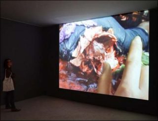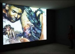 Cette distance est pourtant annihilée par le geste de contact direct avec l’image qu’induit ce nouveau type de support numérique: le passage d’une image à l’autre se fait par l’entremise d’une caresse et l’effet zoom est obtenu par un contact prolongé sur les plaies béantes. Cependant, froids et peu engagés, ces gestes désignent avant tout un zapping.