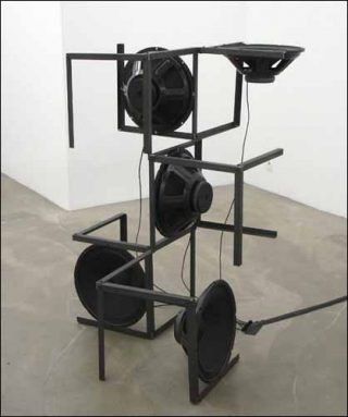— Pristine prisms #5, 2008. Haut parleur et acier. 120 x 80 x 100 cm