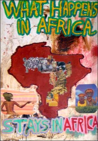 — What Happens in Afrika. Stays in Afrika, 2005. Techniques mixtes sur papier. 101.6 x 66 cm.