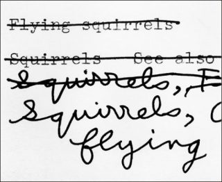 Erica Baum, en isolant un ou quelques-uns de ces mots compose un objet de langage inédit, comme «squirrels, flying», qui devient une formule ayant plus à voir avec une prophétie qu’avec la description rationnelle d’une œuvre du passé.