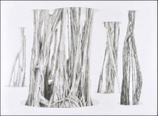 — Juim Shaw, Banyan Tree in holes, 2011. Crayon sur papier. 140 x 188 cm.