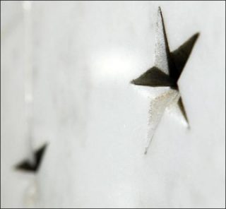 Également situé dans le hall d’entrée, le Memorial Wall honore les employés de l’agence de renseignements américaine morts en mission. A chaque agent perdu sur le terrain, lui est substituée une étoile noire gravée dans le marbre du mur. Lorsqu’un agent «disparaît », Tim Johnston, l’actuel tailleur de pierre, sort d’un coffre fort le gabarit créé par son prédécesseur et entaille le mur.