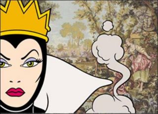 Les sujets sont eux-mêmes des superpositions orchestrant deux types de confrontations où des copies de peintures du XVIIIe siècle, entre autres, rencontrent soit les logos des cosmétiques du XXIe, soit les personnages disneyens de la première génération, la douce et naïve Blanche-Neige donc. Notons que les trois sculptures emperruquées sont des bustes de Marianne redessinés en fonction des critères de beauté auxquels se réfèrent les actuelles clientes, ou patientes peut-être, des chirurgiens esthétiques.