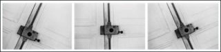 Son travail photographique reprend ces interrogations à travers celle de la ville. Ses photographies en noir et blanc, sans anecdote ni figure humaine, nous révèlent par le jeu du cadrage et de la perspective son organisation et sa structure. A l’origine simple support documentaire, la photographie est devenue une composante essentielle de son œuvre tant elle entretient de liens avec ses installations, ses sculptures, ses films, ses dessins et ses livres mais aussi avec la réalité physique de l’espace dans lequel nous vivons. Dans les pièces murales comme dans les photographies de cette exposition, Peter Downsbrough incite le visiteur à faire évoluer son regard sur ce qui l’entoure et ce qu’il pense connaître.