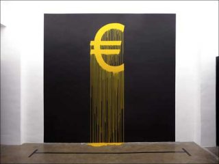 De la performance foudroyante de Zevs, on garde le souvenir d’un cri retentissant et d’un euro dégoulinant de peinture jaune sur un fond noir. Ce symbole monétaire violemment — et littéralement — «liquidé», victime d’une exécution sommaire par projection de matière, souligne les rapports de force propres au libre échange et la pression (visuelle) exercée sur les consommateurs. Acte de vandalisme ironique commis dans les lieux d’art — le Palais de Tokyo en l’occurrence —, il dit leur infiltration progressive par l’économie, dans un mouvement continu du public vers le privé, de l’art au marketing. Destitué de son statut d’icône, le logo Chanel subit le même sort.