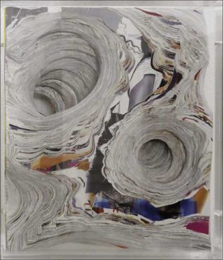 Etroitement enlacés, l’art et l’économie s’épousent ici pour le meilleur et pour le pire. Baptiste Debombourg scelle définitivement leur alliance en creusant dans le catalogue de vente par correspondance La Redoute les sillons d’une abstraction colorée, rendant visibles les couches successives d’une sédimentation — irréversible ( ?).