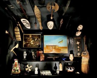 Ainsi dialoguent des objets, des objets d’artisanat avec des œuvres d’un art dit «primitif», des œuvres contemporaines — et non des moindres — avec des œuvres du passé, des œuvres occidentales avec des objets à caractère ethnographique et plus généralement, des œuvres avec l’espace qui les entoure comme dialoguent aussi la pénombre avec l’éclairage qui la transperce.