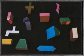 Les pièces de Roxane Borujerdi pourraient servir de modèle à cet esprit général, de sa première pièce à l’entrée de la galerie, une photographie de formes géométriques flottantes, à cet «objet» indéfini intitulé Volumen, toujours tributaire de ses formes colorées et qui semble vouloir s’échapper par la fenêtre du premier étage.