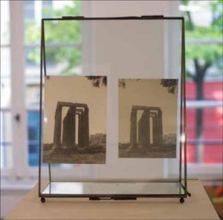 — Emilie Pitoiset, Le Double Manque à celui qui le double hante, 2010. Cadres en verre sertit de laiton, deux tirages, 26,5 x 21 x 13 cm