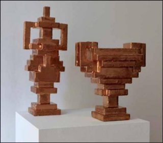 — Marlie Mul, Vases, 2008. Polystryrène, résine, bronze et or, 20 x 10 x 7 cm et 29 x 5 x 7 cm