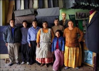 — Marcos Lopez, Famille de tailleurs. La Paz. Bolivie. (Familia Sastres. La Paz. Bolivia), 2010. Lambda Print retouche artisanale à la main. 118 x 157 cm