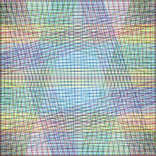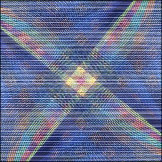 Contenues dans des cadres-boîtes, ces œuvres de petite dimension (20,5 x 20,5 cm) se composent d’un enchevêtrement terriblement ordonné de lignes polychromes, dont les recoupements créent de rigides formes géométriques, jacquard hypnotique. Ces polygones sont infléchis cependant par des vibrations semblables à des empreintes digitales, conservant leur anonymat dans le trouble dont elles émanent.