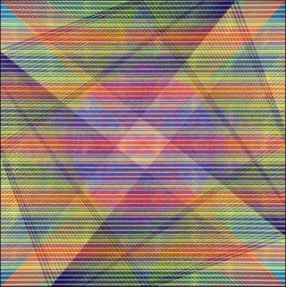 Rob de Oude peint des lignes droites, des dizaines et des dizaines de lignes droites qui achèvent de donner dans leur multitude une impression de lignes courbes. Cet artiste d’origine hollandaise, vivant à Brooklyn, parvient à cet effet grâce à un processus de travail précis et rigoureux. À force de patience et détermination, il superpose les uns après les autres des niveaux de matrices rayées jusqu’à ce que celles-ci commencent à se déformer. Cette «ruse» optique s’apparente aux fondements du mouvement Op Art (Optical Art) dans sa prédisposition aux tendances maximalistes qui visent à confondre la vision par une surcharge graphique.
