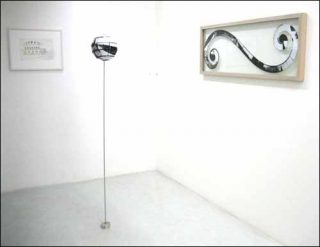 — Orange Space, 2004. Bandes en spirales photographiques, noir et blanc, présentées en deux parties. Image bidimensionnelle 50 x 130 cm. Image sphérique 20 cm de diamètre.