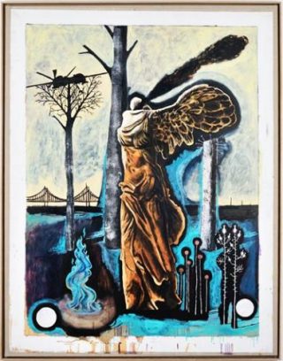 — Damien Deroubaix, Beneath the remains, 2014. Huile sur toile. 224 x 178 cm.