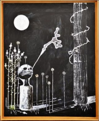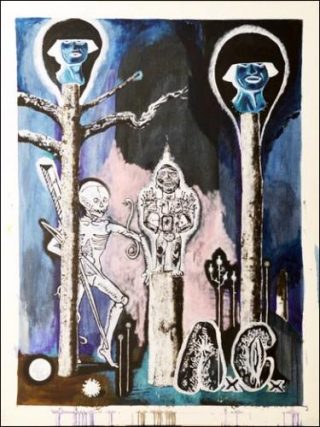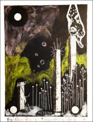 Damien Deroubaix est un artiste qui sonde les thèmes de la mort, de la vanité et de l’invisible à travers une œuvre qui repose sur la pratique de l’hybridation, et une attention accrue aux autres cultures ainsi qu’aux artistes qui ont tenu de véritables rôles de visionnaires.