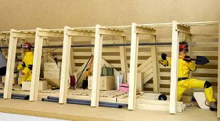 — Horizon moins vingt, Action men, 2006. Maquette échelle, matériaux divers. 60 x 60 x 180 cm.