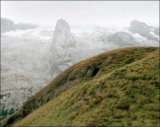Les photos de Paola de Pietri présentées dans « To Face » (2009-2011), sont à première vue essentiellement consacrées à un certain paysage. Au nord-est de l’Italie, il s’agit d’un paysage où la verdure, qui tire sur un jaune un peu lugubre, et l’aridité de la roche se composent en habile harmonie avec le ciel. De sa lumière spectrale, celui-ci apparaît sur toutes les photos, à la fois discret et majestueux. Et jamais – toujours à première vue – la moindre présence humaine. Donner à voir la force naturelle des espaces envisagés est ce qui semble importer le plus à Paola Di Pietri, qui a mis le territoire au centre de sa pratique artistique. Elle en tire des images à la fois très structurées dans leur composition et très délicates dans le rendu des valeurs ou des teintes.