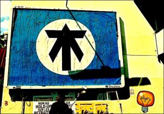 Tom Tom. Il y a trois aspects dans mon travail : je détourne les publicités, je fais des logos et je brouille le message des panneaux publicitaires. Pour te donner un exemple je peux prendre une pub Easy Jet qui dit «Vol pour Londres à 80 euros», en la détournant le résultat sera «L’ordre 80 vols par jour». J’ai aussi fait l’usine à partir du mot Tunisie, cela donnait « L’usine, si proche, si belle ». Autre exemple: l’affiche du transformiste italien Bracheti est devenue Berlusconi.