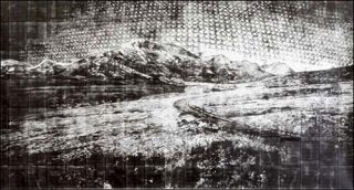 — En montagne, 2007. Transfert sur papier. 271 x 498 cm.