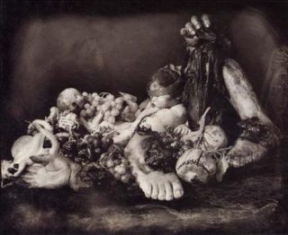 Non loin de l’œuvre paroxystique du Body Art, c’est l’allaitement comme premier schème de l’anthropophagie qui fait se côtoyer une œuvre de Cindy Sherman, grimée en madone du Moyen Âge, avec une très belle Vierge à l’enfant, de l’atelier de Jos Van Cleve (début du XVIe siècle) ou encore avec une photographie de Bettina Rheims Miraculous Milk (1997) où, du sein d’une femme apparentée à la Vierge, du sang s’écoule à la place du lait.