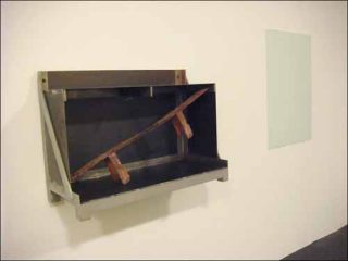 Installation de 2 éléments acier 100 x 50 x 70 cm. Huile sur verre. 70 x 100 cm