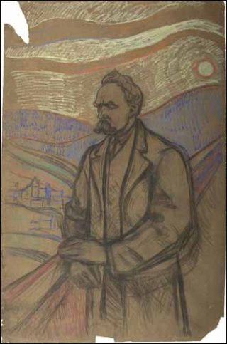Friedrich Nietzsche, 1906. Fusain, pastel, tempera sur papier. 196 x 128 cm