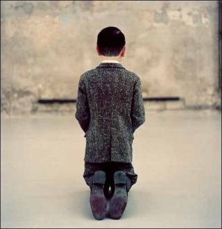 L’Apocalypse, annoncé par Murnau et son Faust, dont un extrait est projeté dans un couloir goulot, passage obligé qui marque une rupture remarquablement inscrite dans le parcours, ouvre sur la seule pièce nue de l’exposition. Une vacuité qui confère toute sa force transgressive à l’œuvre de Maurizio Cattelan, Him, cet enfant agenouillé et priant : Hitler dans le corps du petit garçon qu’il fut aussi.