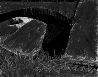 Dans sa nouvelle série, intitulée «Track», l’artiste offre une approche inédite de son travail en détournant des photographies de paysages, en noir et blanc, prises en 1984 durant la Mission photographique de la Datar.