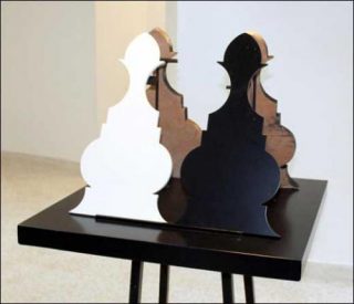 Egalement inspiré par cet art du zellige, Fouad Bouchoucha a travaillé avec le maître artisan de l’Ecole des Arts et Métiers de Tétouan pour la réalisation de l’installation La maîtresse et son esclave. L’œuvre, qui se distingue par un dispositif de monstration à la manière des laboratoires scientifiques, met en miroir deux paires de zelliges de modèle «Charaffa», selon un procédé soulignant l’extrême standardisation des protocoles liés aux logiciels de design industriel et la singularité des «savoir-faire». Interrogeant la disparition progressive de l’un, face au développement exponentiel de l’autre, l’œuvre fait référence à un non-dit de l’Histoire de certaines grandes familles marocaines.