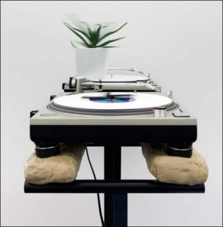 Aussi, par un télescopage subtil avec les origines de la musique techno, il affirme les racines de sa pratique avec le sampling. A la recherche de «forces» naturelles, surnaturelles, divines et humaines, il «recharge» ses œuvres d’une capacité magique et crée des leurres en falsifiant les matières, en se réappropriant des techniques à la fois de pointe et manuelle.