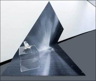 Ainsi, vit-on dans un monde bassement matérialiste, vouant un culte aux objets de communication? Ou, malgré les apparences, évolue-t-on encore dans une société où règnent des croyances irrationnelles, des superstitions magiques? L’installation Ultra High Frequencies recouvre un pan entier des murs de la galerie d’une douzaine d’antennes paraboliques, et constitue un impressionnant lieu de culte, un autel où l’on retrouve des plumes d’oiseaux comme dans un rituel vaudou. Pierre Clément use encore du «sampling» et de la répétition en déclinant un même motif en plusieurs exemplaires, juxtaposés les uns aux autres. S’agit-il d’un dispositif ultra secret ou d’une technologie alternative qui nous permettrait d’interférer avec l’univers, le divin, les extraterrestres? Peut-on repérer, écouter et décrypter des ondes venues du bout de l’espace, qui véhiculeraient un message codé? Pierre Clément semble donc réactiver un vieux fantasme de l’humanité: être en prise directe avec le reste du cosmos, et capter les forces invisibles, les ondes qui le fondent et le traversent.