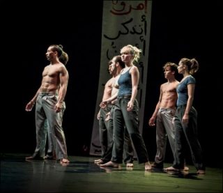 Son écriture chorégraphique explore cet héritage multiple en quête d’identité, portée par les récents événements des «Printemps arabes». Sur scène, la force de la poésie de Mahmoud Darwich, récitée en langue arabe et associée à une musique hypnotique, entraîne les danseurs vers un état physique poussé à son extrême, semblant ainsi défier le monde.