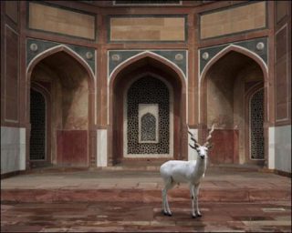 Le préfixe «trans» du titre «Transmigration» de l’exposition à la galerie Les Filles du Calvaire exprime un degré supérieur de migration. Il ne s’agit plus d’un simple nomadisme mais d’un dépassement radical en corps et en esprit. On pense évidemment à la réincarnation, sorte de transmigration des corps. Mais aussi au passage du genre animal au genre humain dans la série de photographies «Indian Song» dans laquelle des animaux sauvages prennent leurs aises dans de hauts lieux de l’architecture indienne…