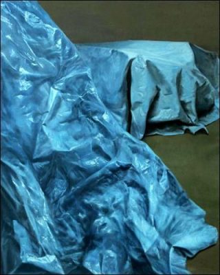 Les espaces créés par la peinture de Youcef Korichi sont sans porte ou fenêtre. Le vide s’est fait à l’intérieur. Tout accident anecdotique est chassé, et s’impose l’impassibilité qui vient du vide. La peinture a sculpté des espaces intérieurs, opaques, qui se creusent par le centre, par le dedans, par le dessous. Espaces clos protégeant bien leurs propriétés par des toiles cirées à la présence imposante ou à la présence météorique, à la couleur spécifique, qui s’impose selon l’espace créé par le fond épais et impénétrable, bleu azur, blanc laiteux, toiles cirées aux surfaces réfléchissantes: la lumière est renvoyée, qui ne traversera pas la chose.